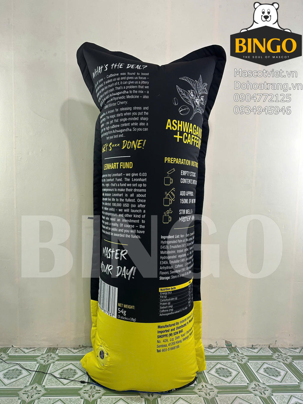 Mô hình hơi túi Leon Hart là giải pháp marketing ấn tượng từ Mascot Bingo. Sản phẩm được thiết kế mô phỏng hoàn hảo 100% hình dạng túi cà phê thật, tạo hiệu ứng thị giác mạnh mẽ tại các sự kiện.